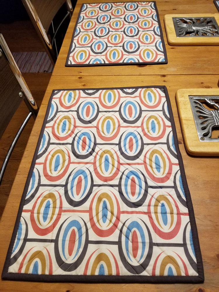 As you may guess, these placemats have purely aesthetic purpose, because the table is much easier to clean after a meal, while these placemats need to be washed and dried, maybe even ironed. They would make more sense if they were protecting a fancy tablecloth. When I was growing up, we had the plastic placemats that could be easily wiped if some food or drink dripped on them; they were protecting tablecloth and making crumbs easy to dispose of. But this is something else – impracticality for sake of beauty? I don’t know, but I’ll keep using them until they get too stained, then I’ll go ahead and make new ones.