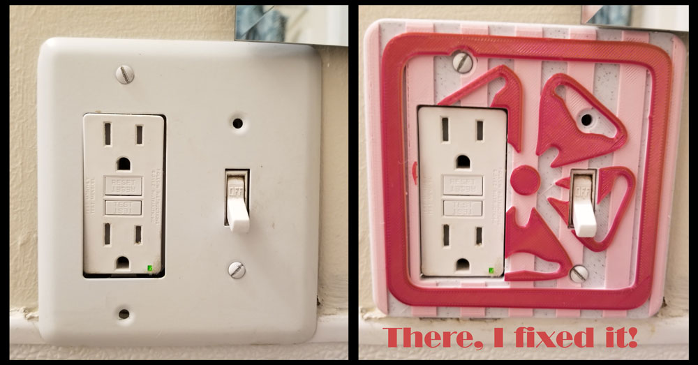 Having settled into my new “studio”, I was inspired to create something that will further improve the living experience (at least aesthetically) at our new place. I 3D printed face plate for outlet/light switch to replace the one that didn’t quite fit because of the trim: