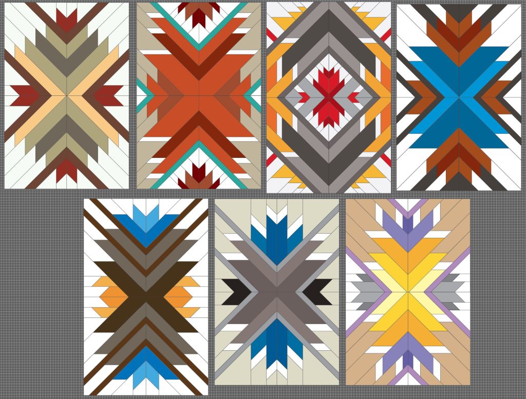 And figured out a way to 3D print photographs, but I’ll post about that later, since I’m still experimenting with the technique. Then, having a new dining table, I thought it would only be reasonable to adorn it with something handmade: placemats! The designs I gravitated towards are actually made out of painted wooden planks, but I don’t know what that kind of art is called. I experimented in Illustrator with the designs: