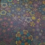 After the first flower was done (second photo above), I fired up Illustrator and started putting together the pattern. I kept adding to it, and it took me some time to get it right, because all the shapes had to fit in perfectly and make sense. And then, I also had to figure out the border. I wasn’t in favor of having sections of the flowers cut off to fit into the frame, so I designed the background such that it looks like rays radiating from the outer flowers in alternating shades, expanding on the theme of the flowers themselves. Here’s what the pattern looked like:
