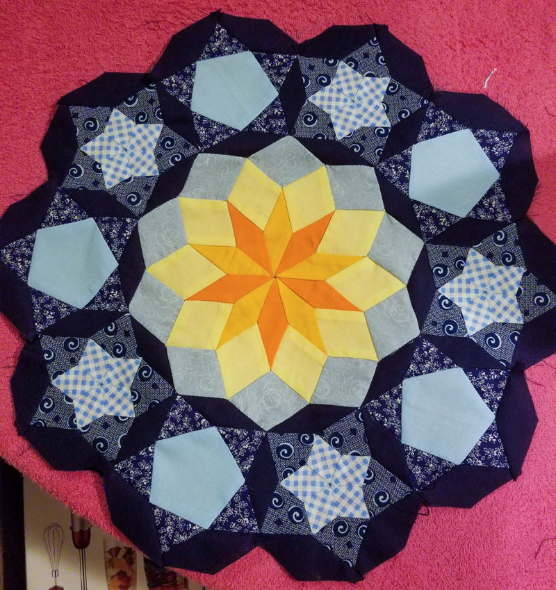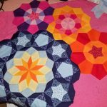 The technique I used to piece this was NOT English paper piecing (EPP), rather it was hand piecing with running stitches. If I were to piece this with papers, I would’ve given up before I finished a single flower – it does not look good, it’s very tedious and time consuming. Not only would I need to cut paper pieces in addition to fabric pieces, but I would also need to perform a basting either with loose stitches or glue to keep paper in place while stitching, and I’m just not in favor of using glue on fabric. I know most people will use EPP for Millefiori, but in all honesty, I think it’s an unnecessary waste of time and material.